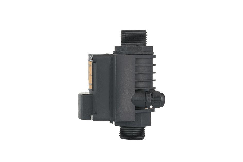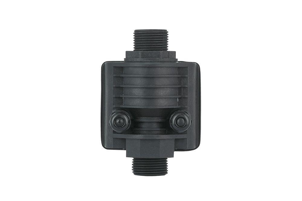 - Автоматическое включение насоса при потоке жидкости более 2 л/мин или при снижении давления в системе до уровня Pмин.