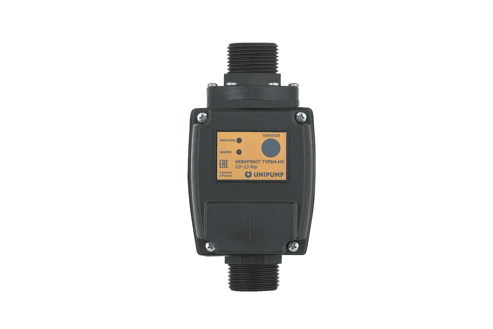 Блоки «АКВАРОБОТ ТУРБИ М3» предназначены для автоматического управления по потоку и минимальному давлению (Рмин) включением и выключением однофазных поверхностных и погружных (в том числе вибрационных) насосов мощностью до 1,5 кВт, также они могут быть использованы как устройства защиты насоса от работы в режиме «сухого хода» и других аварийных ситуаций (падение сетевого напряжения, неправильный монтаж и т.п.).