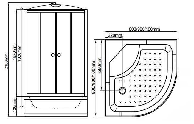 - Комплектация: тропический и ручной душ, полка стеклянная, вентиляционная решетка