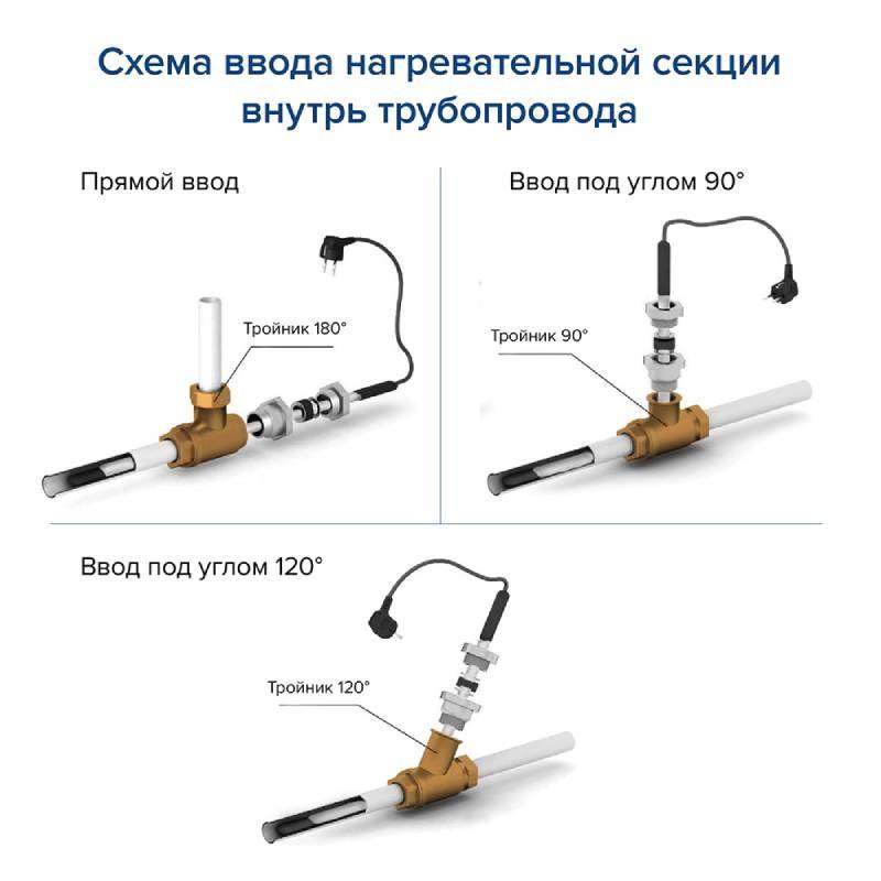Секция нагревательная на основе саморегулирующегося греющего кабеля в готовых комплектах мощностью 10 — 15 Вт/м для защиты от замерзания труб питьевого водопровода. Монтируется внутрь трубы. В комплект входит сальник (герметичный ввод) с наружной резьбой 1/2 дюйма. Шнур питания длиной 1.5 метра с евровилкой. Комплекты поставляются размерами от 1 до 50 метров. Главное преимущество саморегулирующихся кабелей - способность менять свою теплоотдачу в соответствии с температурой окружающей среды, а значит меняется и потребление электроэнергии. Конструкция нагревательной секции представляет собой отрезок саморегулирующегося нагревательного кабеля, оснащенного полутораметровым холодным концом с одной стороны и концевой муфтой с другой. Длина и мощность комплекта выбирается исходя из длины трубы, диаметра и толщины теплоизоляции. Соединительная и концевая муфты изготовлены в заводских условиях, надежны и герметичны.