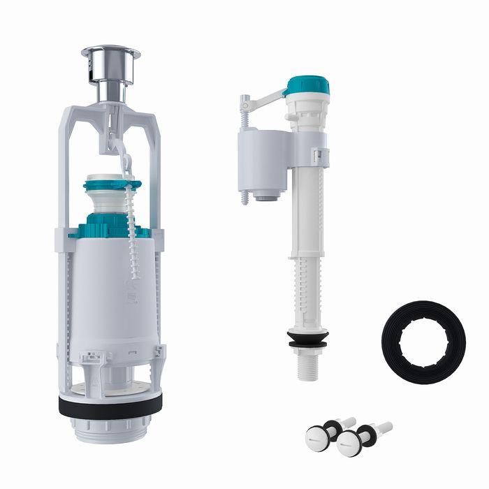 Одноуровневая арматура с боковым подводом воды (тип А) с круглой силиконовой прокладкой. Абсолютный лидер продаж в своем ценовом сегменте. Для большинства унитазов и без предварительных замеров. Подойдет для бачков высотой 320-420 мм, то есть практически для всех унитазов. Функция «Старт/Стоп» позволяет управлять расходом воды при смыве и экономить. Понятные настройки для оптимального объема смыва. Все подвижные части находятся внутри защитного корпуса и изготовлены из высококачественного ABS-пластика. Работает при любом качестве воды. Фильтр грубой очистки впускного клапана задерживает мельчайшие частицы грязи и песка. Можно промыть, не вынимая из бачка. Без протечек надолго – прокладка не рассыхается и не деформируется со временем, что исключает протечки. Без ржавчины – пластиковые крепления не ржавеют и с легкостью раскручиваются при необходимости. Бесшумный набор воды за счет продуманной конструкции впускного клапана. Гальваническое покрытие кнопки не стирается после длительного использования. Гарантия – 7 лет. Увеличенный срок службы – 200 000 смывов (более 30 лет для семьи из трех человек).
