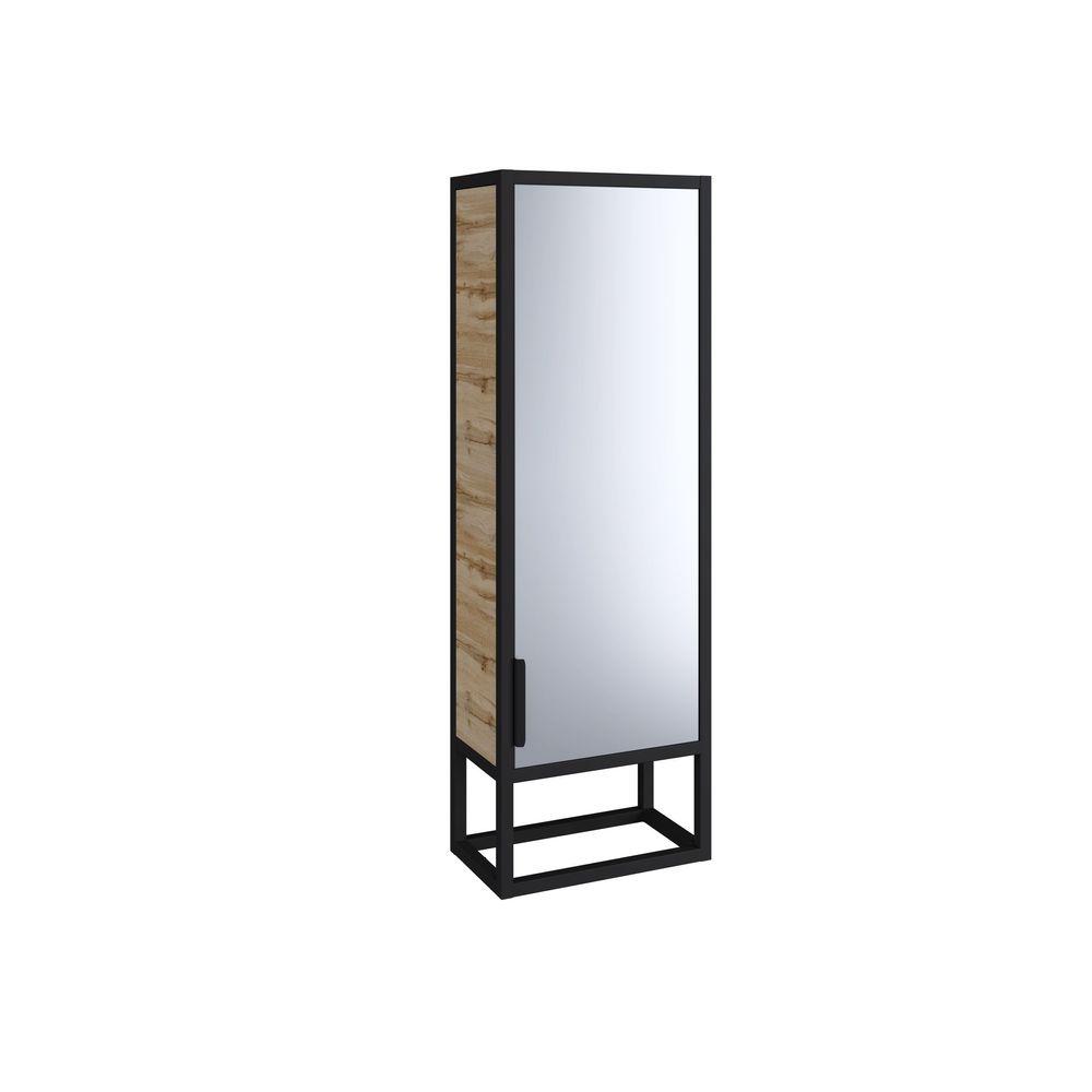 Зеркальный пенал, дизайн которого создан на контрасте трех материалов - металла, дерева и стекла. Такое эклектичное сочетание делает его подходящим для интерьеров в любой стилистике и цветовой гамме. Дополнительным дизайнерским решением являются ножки оригинальной формы, обеспечивающие необходимую устойчивость. Пенал прекрасно подходит для компактного и удобного хранения банных принадлежностей, косметики и личных вещей, при этом не занимает много свободного пространства. Он превосходно сочетается как с предметами из одноименной коллекции, так и с другой мебелью.