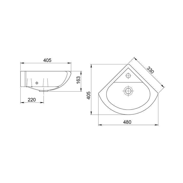 Раковина Водолей - умывальник второй величины с отверстием под смеситель. При монтаже используются кронштейны 320 мм или постамент Салют.